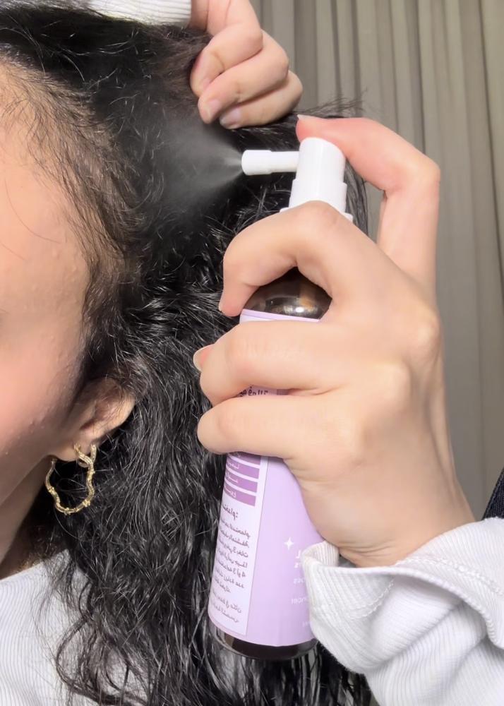 رجي العبوة أولًا, بعد التجفيف بالمنشفة, على شعر نصف مبلل, قسمي شعرك إلى 6 أقسام وبخي 3 بخات على كل قسـم مباشرة على الفروة ودلكيها جيدًا لمدة 3 دقائق. يُكتفى باستخدامه 3 أو 4 مرات في الأسبـوع. بإمكانك زيـادة عدد البخات حسب كثافة شعرك.