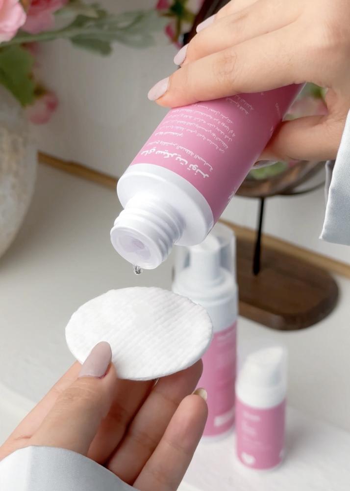 ابتكرنا تركيبة لطيفة وآمنة تمنحك تفتيح وتقشير للمنطقة الحساسة بلطف دون تهييجها. يعمل التونر على تقشير وتجديد خلايا البشرة بلطف ليكشف